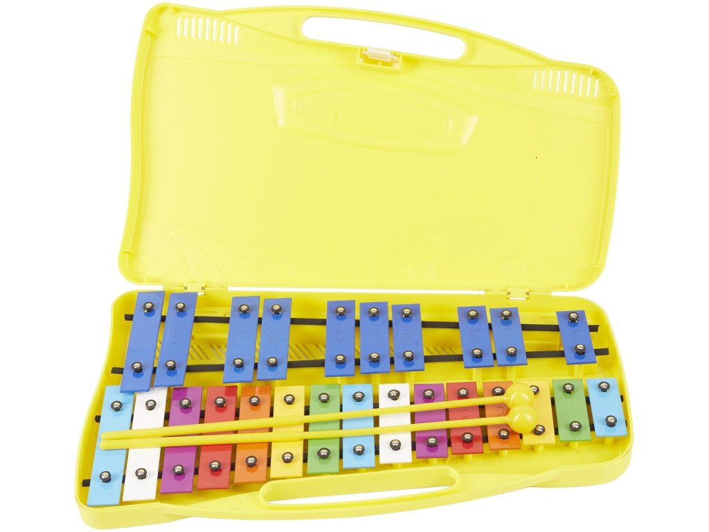 Dwuklawiszowa dzwonkowa gra odpowiednia dla najmłodszych i początkujących muzyków. Dzwonkowa gra zawiera dwa rzędy dźwięków, dzięki czemu oprócz całych można używać również podwyższone i obniżone dźwięki, jak na pianinie. Instrument dodatkowo oferuje jasny, dynamiczny i kolorowy dźwięk, który nie zgubi się nawet w liczebnym chórze dziecięcym. Poszczególne kamienie są rozróżnione kolorystycznie dla łatwiejszej orientacji podczas gry. W zestawie znajduje się para pałeczek i plastikowa walizka dla łatwego transportu.