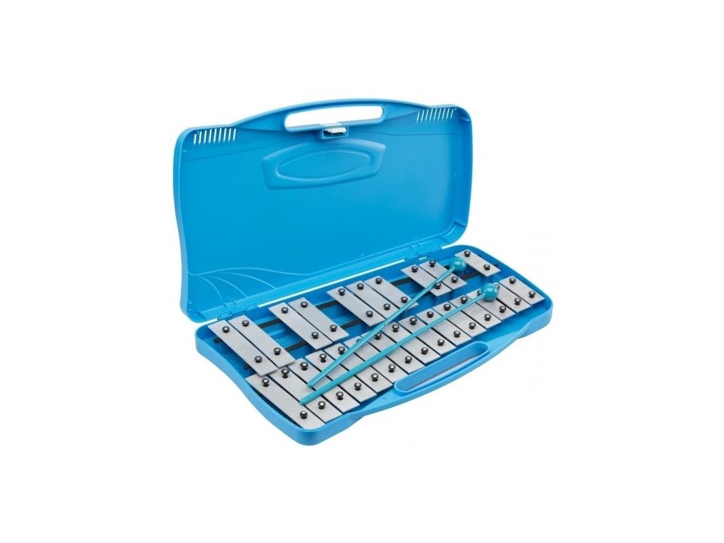 Dwuklawiszowa dzwonkowa gra odpowiednia dla najmłodszych i początkujących muzyków. Dzwonkowa gra zawiera dwa rzędy dźwięków, dzięki czemu oprócz całych można używać również podwyższone i obniżone dźwięki, jak na pianinie. Instrument dodatkowo oferuje jasny, dynamiczny i kolorowy dźwięk, który nie zgubi się nawet w liczebnym chórze dziecięcym. W zestawie znajduje się para pałeczek i plastikowa walizka dla łatwego transportu.