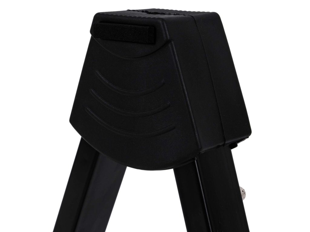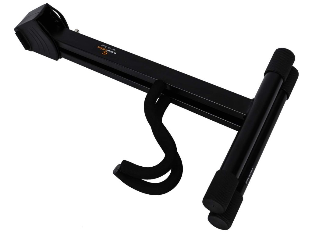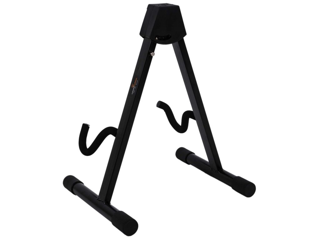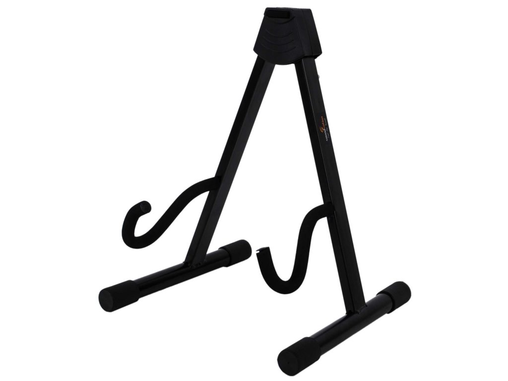 Ten statyw gitarowy typu A o stalowej konstrukcji jest odpowiedni dla większości gitar elektrycznych/basowych. Części stykające się z instrumentami są pokryte gumowaną warstwą, aby zapobiec uszkodzeniu lakieru gitar. W stanie złożonym zajmuje minimalną ilość miejsca. Stanowi zatem dobry wybór do grania w domu, jak i występów na żywo połączonych z podróżowaniem.