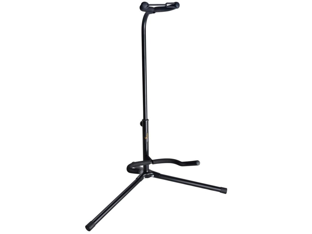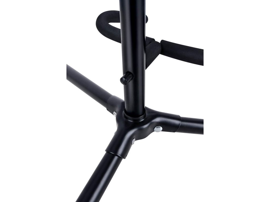 Ten uniwersalny stojak gitarowy o stalowej konstrukcji nadaje się do wszystkich typów gitar/basów. Jego wysokość można regulować w zakresie od 60 do 70 cm. Części stykające się z instrumentami są pokryte miękką, gumowaną warstwą, aby zapobiec uszkodzeniu lakieru gitar. Jego stabilność zapewnia podstawa w postaci trójnogu, o rozpiętości ok. 54 cm.