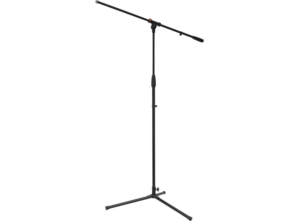 Wysokiej jakości regulowany obrotowy statyw mikrofonowy z trójnożną podstawą i mosiężną blokadą gwintową.