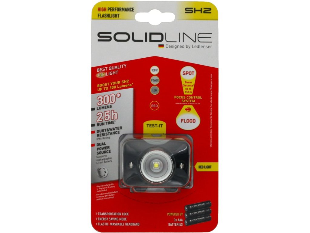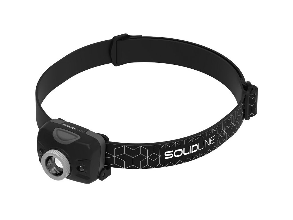 Praktyczna latarka czołowa z zaawansowanymi technologiami i strumieniem świetlnym do 200 lm. Połączenie soczewki i reflektora stworzyło unikalną technologię Advanced Focus System, która nie ma sobie równych na świecie. W ten sposób powstała soczewka reflektorowa umożliwiająca skupienie strumienia światła z płynnym przejściem od szerokiego, homogenicznego kręgu światła do ostrej wiązki i odwrotnie. Ostrość reguluje się poprzez proste przesunięcie głowicy latarki do przodu (ostrość) lub do tyłu (rozmycie). Latarki Solidline wykorzystują zasadę załamania światła. Zwykłe latarki jedynie odbijają światło od powierzchni odblaskowych wewnątrz głowicy latarki. Technologia Dual Power Source to bardzo praktyczna funkcja na długie podróże. Umożliwia wykorzystanie jako źródła energii oryginalnego akumulatora lub baterii AA. Latarka automatycznie rozpoznaje podłączone źródło i dostosowuje moc na podstawie jego parametrów.