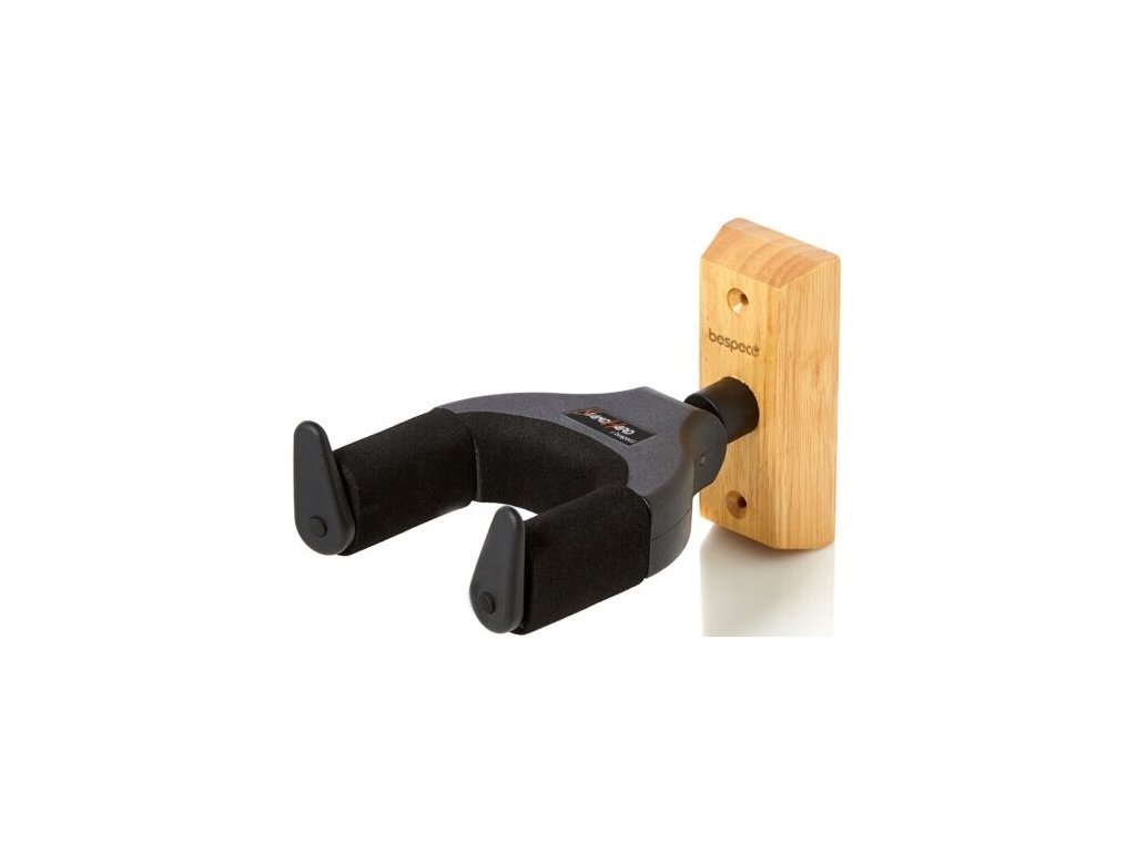 Wysokiej jakości wieszak gitarowy wyposażony w system autolock, który zapobiega wypadnięciu instrumentu i blokuje się pod jego ciężarem. Części, które stykają się z instrumentem, są pokryte naturalną gumą, aby zapobiec jego zarysowaniu. Podstawa jest drewniana.