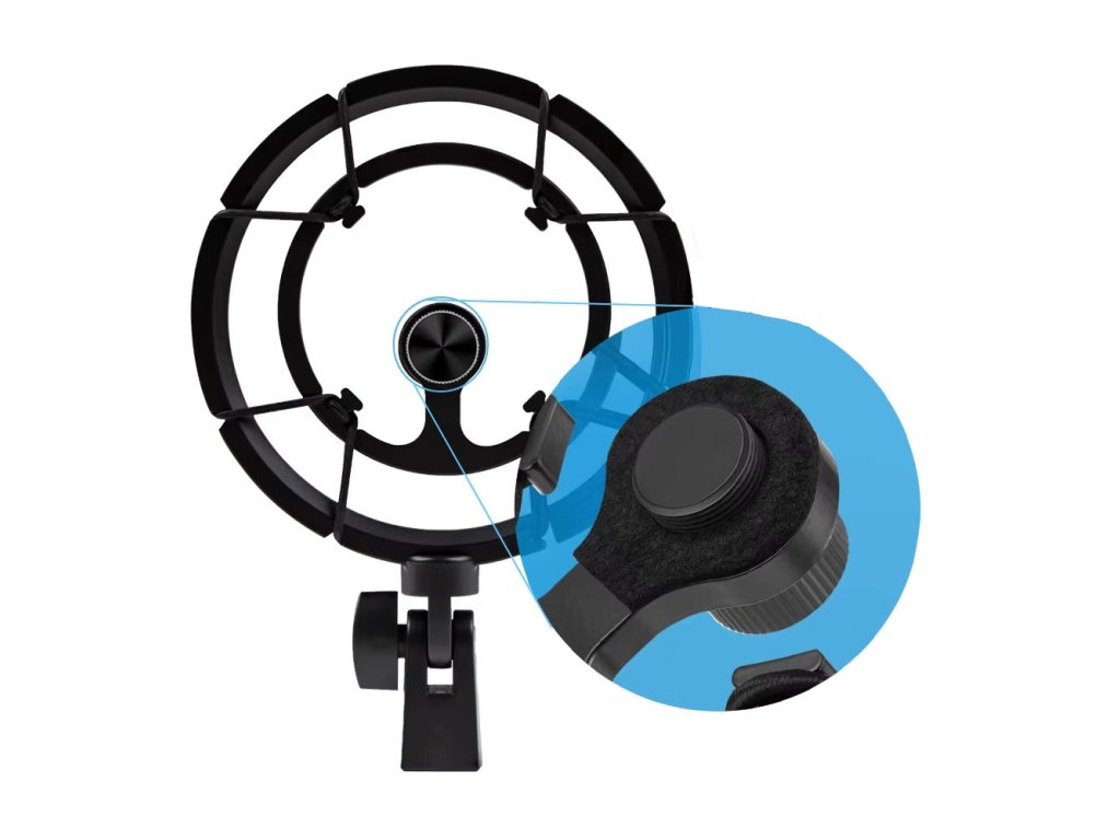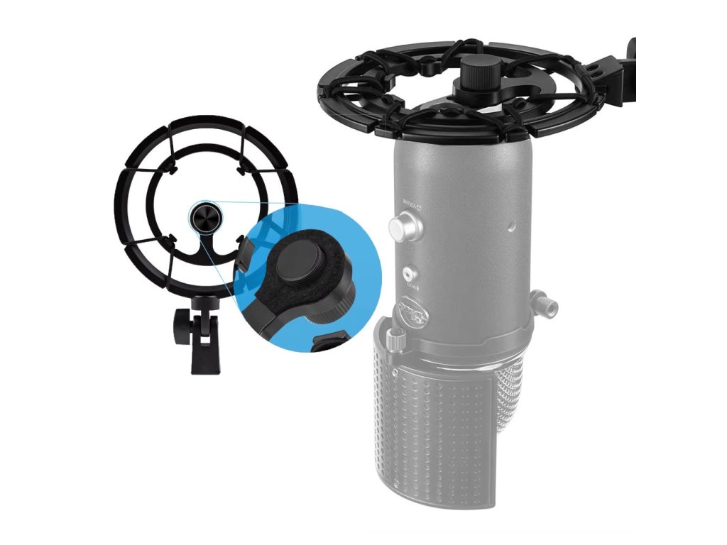 Wykonany jest z wytrzymałego aluminium, co zapewnia lekkość i wytrzymałość. Dzięki standardowemu gwintowi ⅝” jest kompatybilny z wieloma popularnymi mikrofonami, takimi jak Blue Snowball, NOVOX NC-X, Fifine K678 lub Razer Seiren. Łatwe mocowanie do statywu lub ramienia zapewnia dołączony adapter 3/8″ - 5/8″.