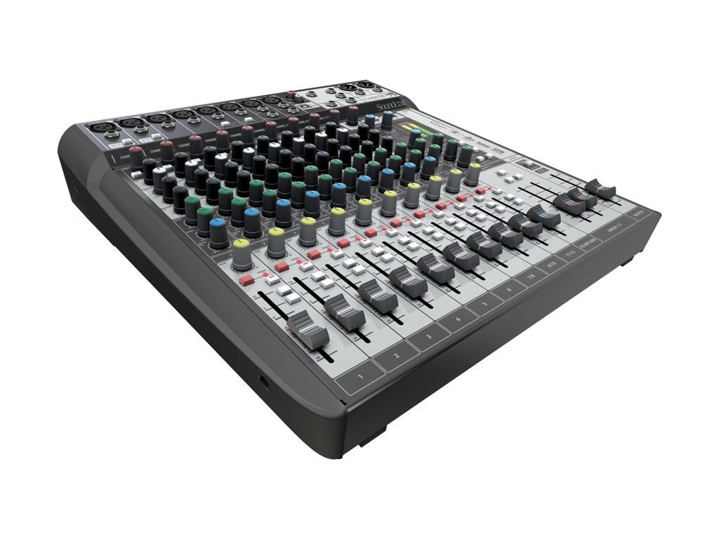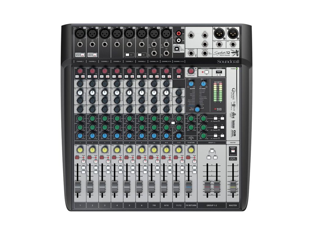 Mikser Signature 12 zawiera łącznie 12 kanałów wejściowych, 8 mono i 1/3 stereo. Dostępnych jest łącznie 8 przedwzmacniaczy mikrofonowych ze złączami XLR i zintegrowanym zasilaniem phantom +48V, wejścia liniowe są w wersji ¼” jack, z wyjątkiem ostatniego kanału stereo, który jest wyposażony w złącza RCA cinch (alternatywnie powrót odtwarzania interfejsu USB). Kanały wejściowe 5 i 6 umożliwiają bezpośrednie podłączenie instrumentów elektrycznych (HiZ).