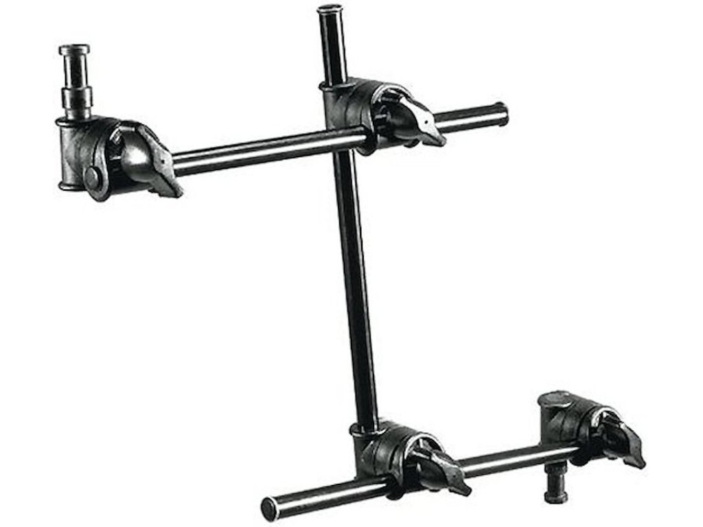 Proste ramię przegubowe z trzema sekcjami, górny adapter 16 mm z adapterem oświetleniowym 3/8". Dolny adapter 16 mm (kompatybilny z adapterem oświetleniowym Superclamp) z gwintem 1/4". Długość ramienia 85 cm, nośność 1 kg.