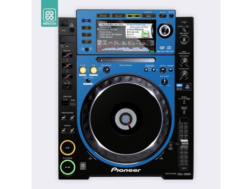Naklejka na odtwarzacz DJ Pioneer CDJ-2000 w wersji COLORS DVS, kolor blue (niebieski).