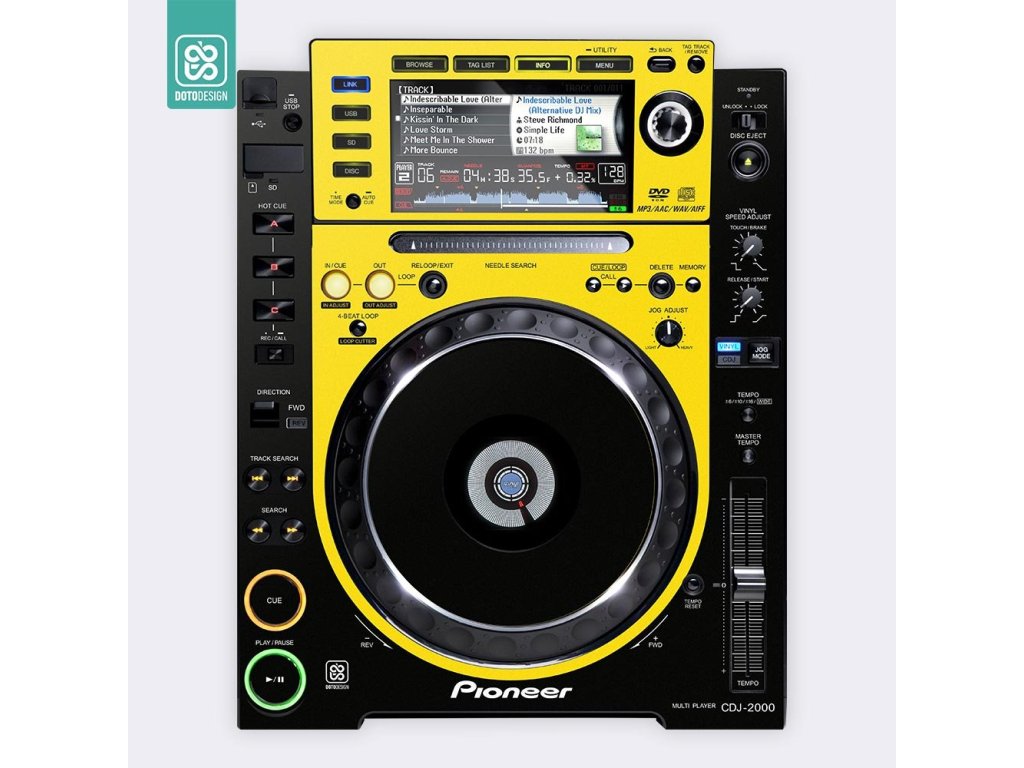 Naklejka skin dla odtwarzacza DJ Pioneer CDJ-2000 w wersji COLORS DVS, kolor yellow (żółty).