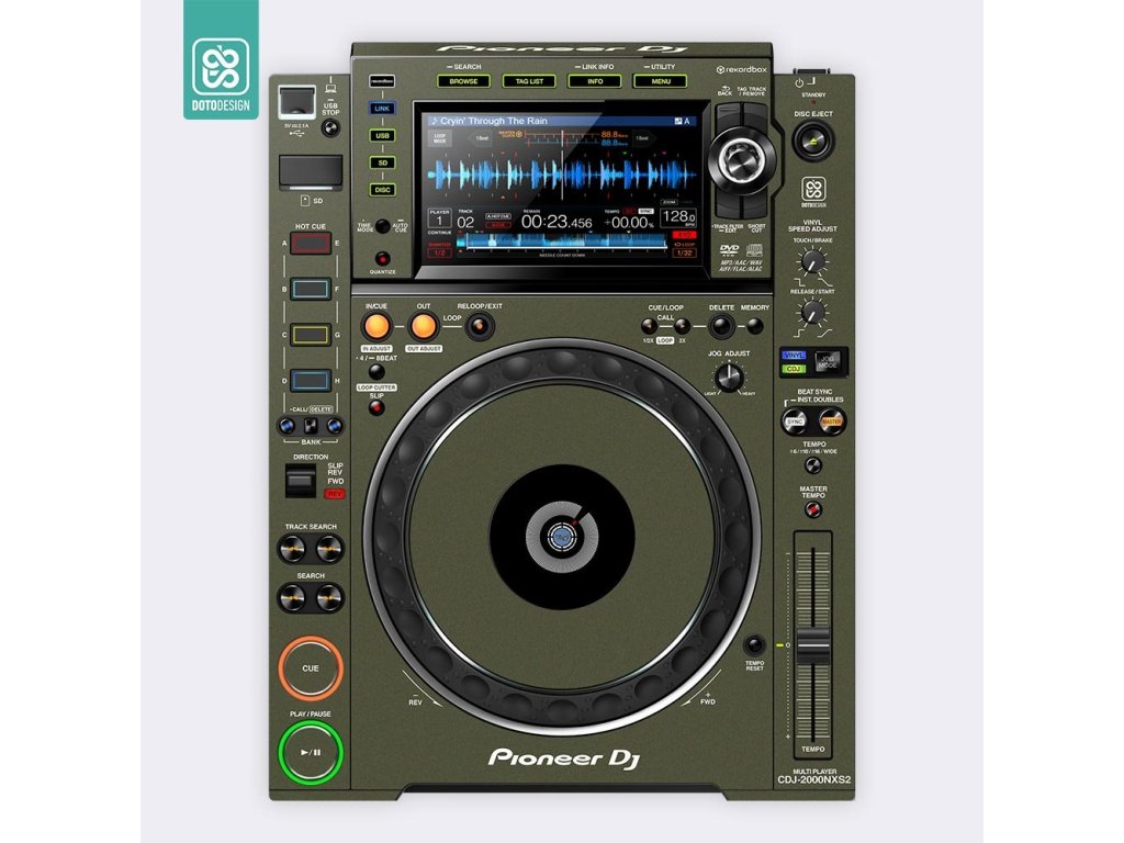 Naklejka na odtwarzacz DJ Pioneer CDJ-2000 NXS2 w wersji FULL COLORS, kolor army green (wojskowa zieleń).