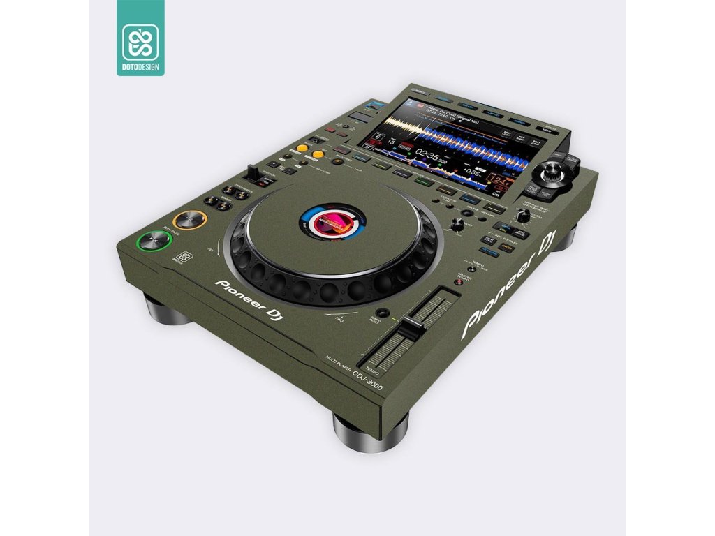 Naklejka na odtwarzacz DJ Pioneer CDJ-3000 w wersji FULL COLORS, kolor army green (wojskowy zielony).