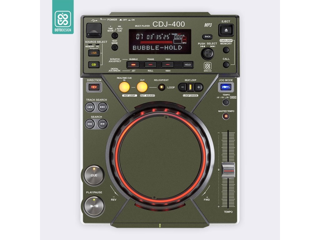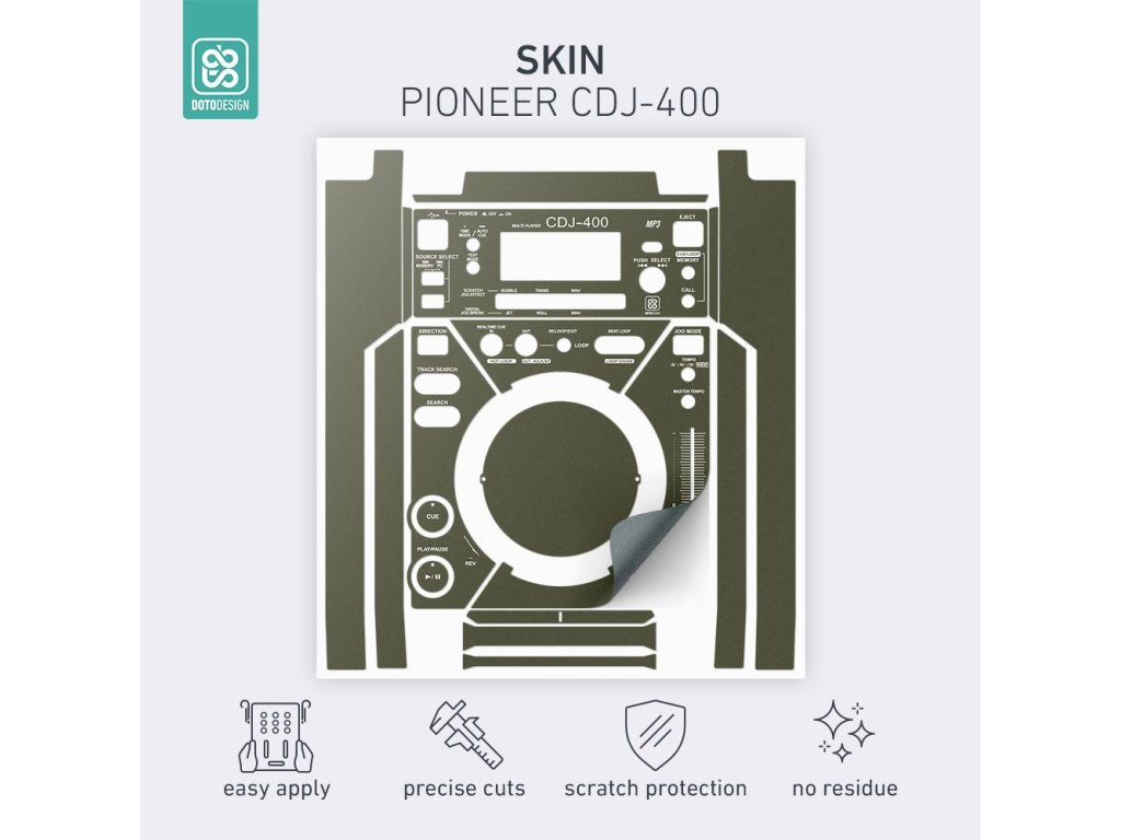 Naklejka skin na odtwarzacz DJ Pioneer CDJ-400 w wersji FULL COLORS, kolor army green (wojskowa zieleń).