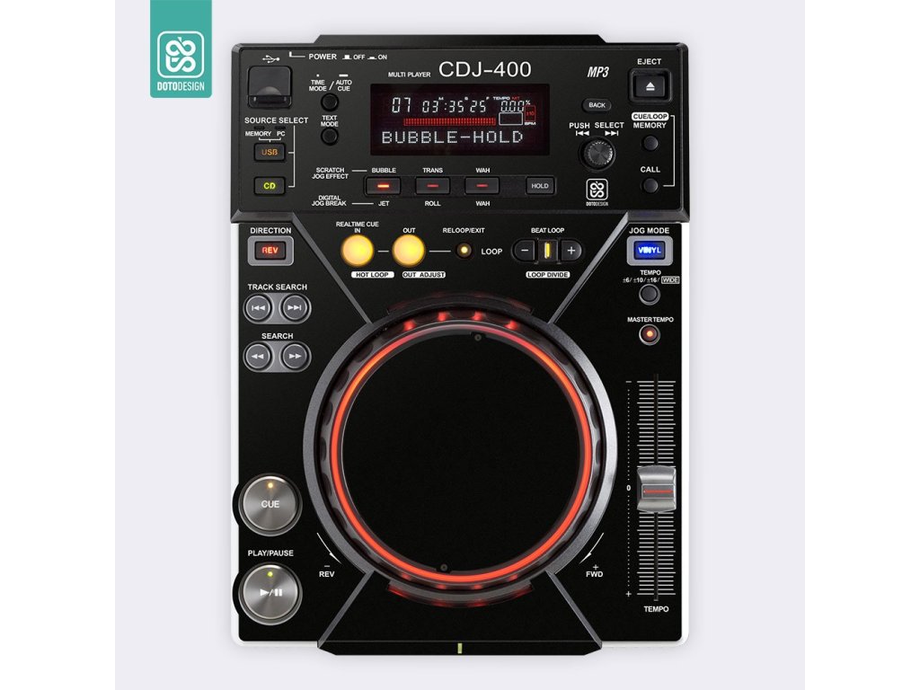 Naklejka na odtwarzacz DJ Pioneer CDJ-400 w wersji FULL COLORS, kolor black (czarny).