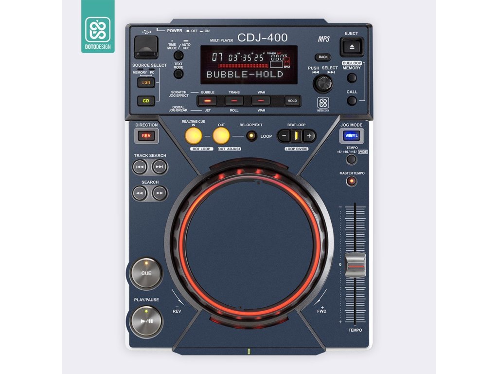 Naklejka na odtwarzacz DJ Pioneer CDJ-400 w wersji FULL COLORS, kolor midnight blue (północny błękit).