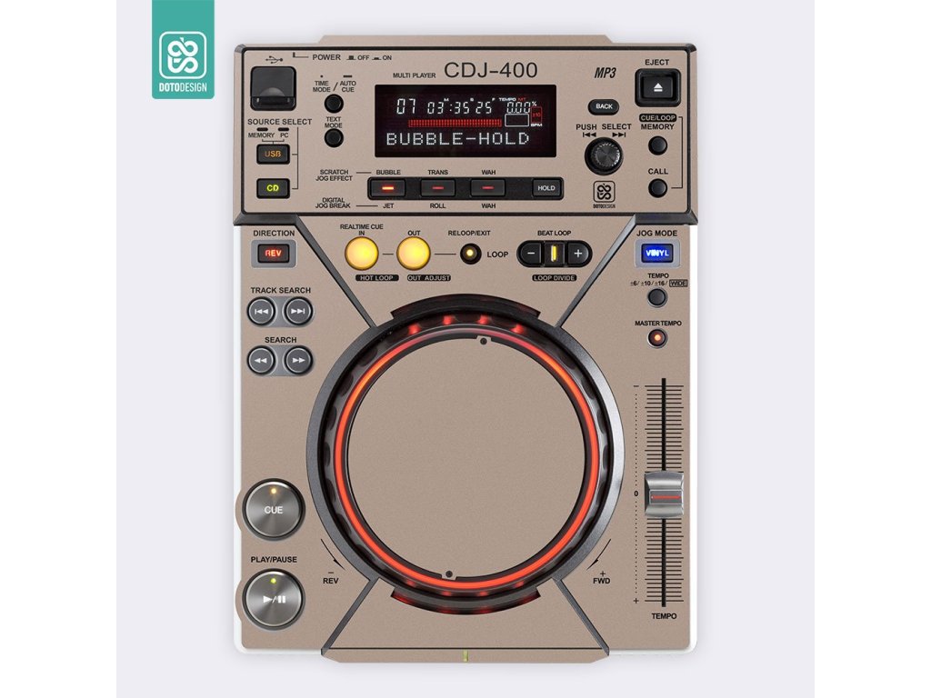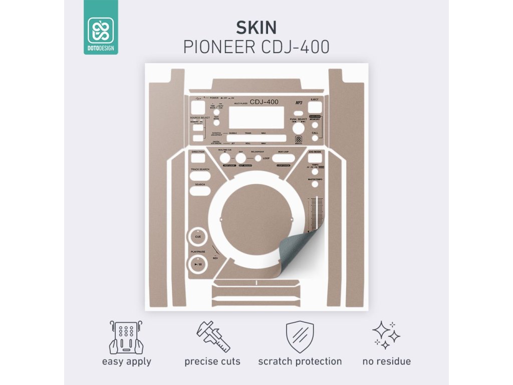 Naklejka na odtwarzacz DJ Pioneer CDJ-400 w wersji FULL COLORS, kolor stone beige (beżowy).