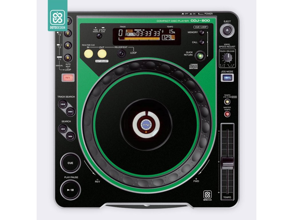 Naklejka skin na odtwarzacz DJ Pioneer CDJ-800 w wersji COLORS DVS, kolor green (zielony).