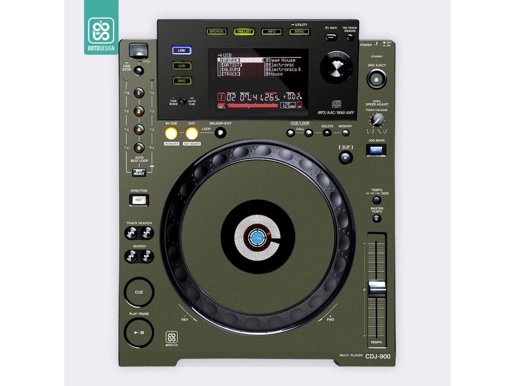 Naklejka na odtwarzacz DJ Pioneer CDJ-900 w wersji FULL COLORS, kolor army green (wojskowy zielony).
