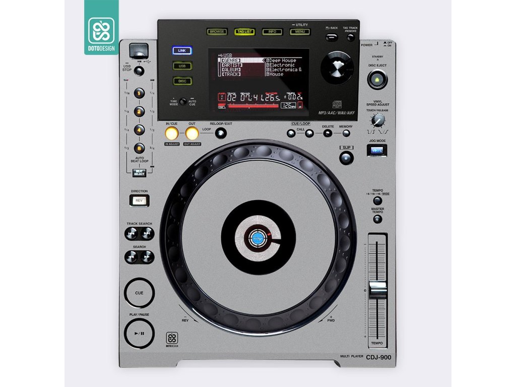 Naklejka na odtwarzacz DJ Pioneer CDJ-900 w wersji FULL COLORS, kolor nardo grey (szary).