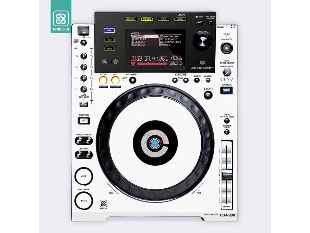 Naklejka skin na odtwarzacz DJ Pioneer CDJ-900 w wersji FULL COLORS, kolor biały.