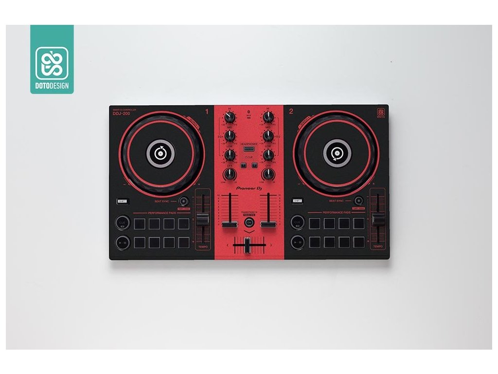 Naklejka na kontroler MIDI Pioneer DDJ-200 w wersji COLORS DVS, kolor red (czerwony).