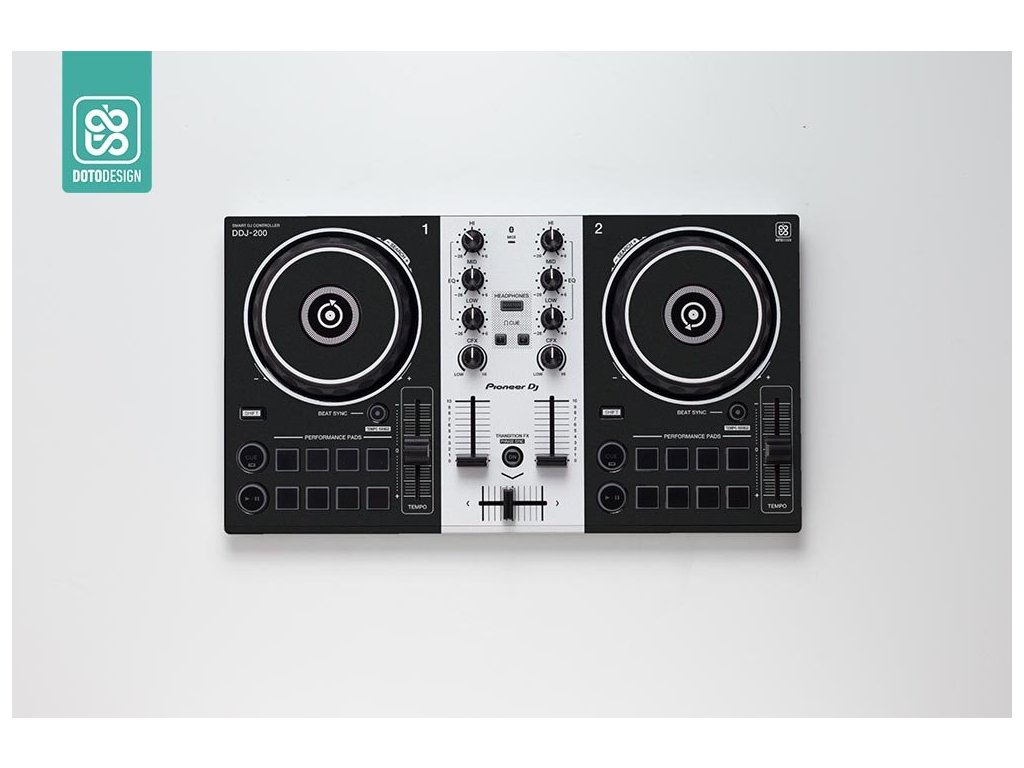 Naklejka na kontroler MIDI Pioneer DDJ-200 w wersji COLORS DVS, kolor white (biały).