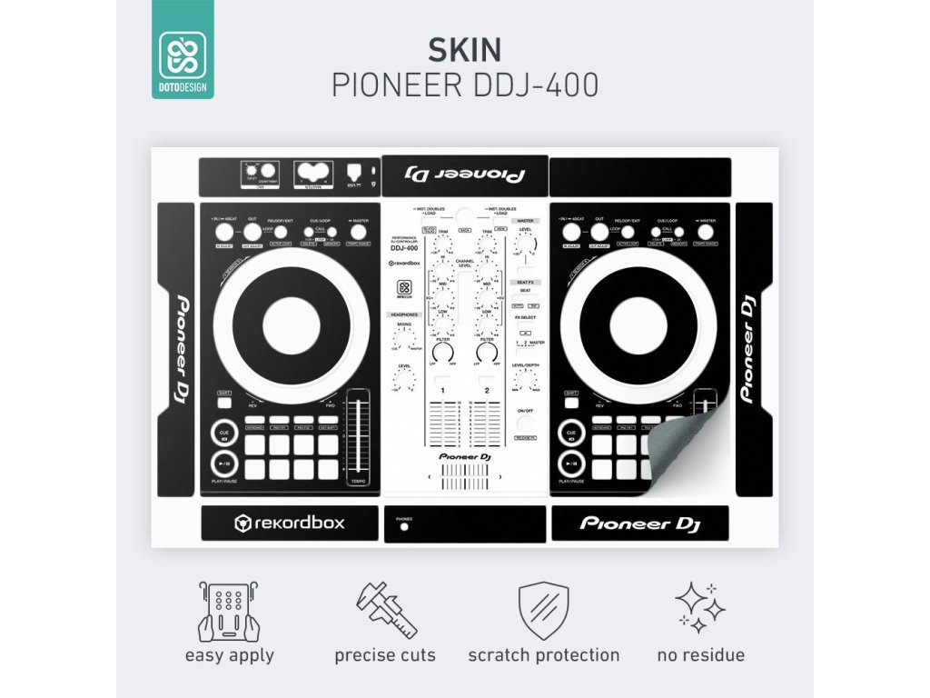 Naklejka na kontroler MIDI Pioneer DDJ-400 w wersji COLORS DVS, kolor white (biały).