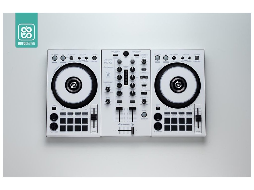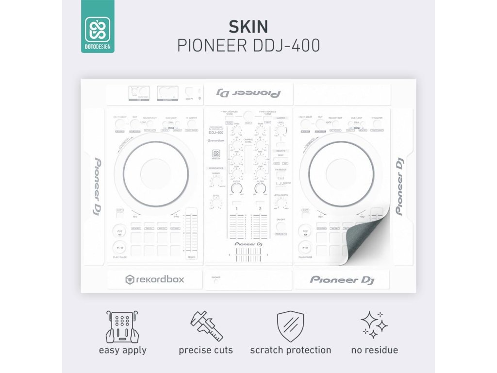 Naklejka na kontroler MIDI Pioneer DDJ-400 w wersji DAY & NIGHT, kolor biały.