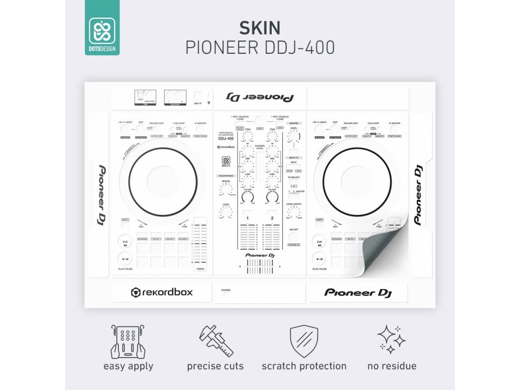 Naklejka na kontroler MIDI Pioneer DDJ-400 w wersji FULL COLORS, kolor biały.