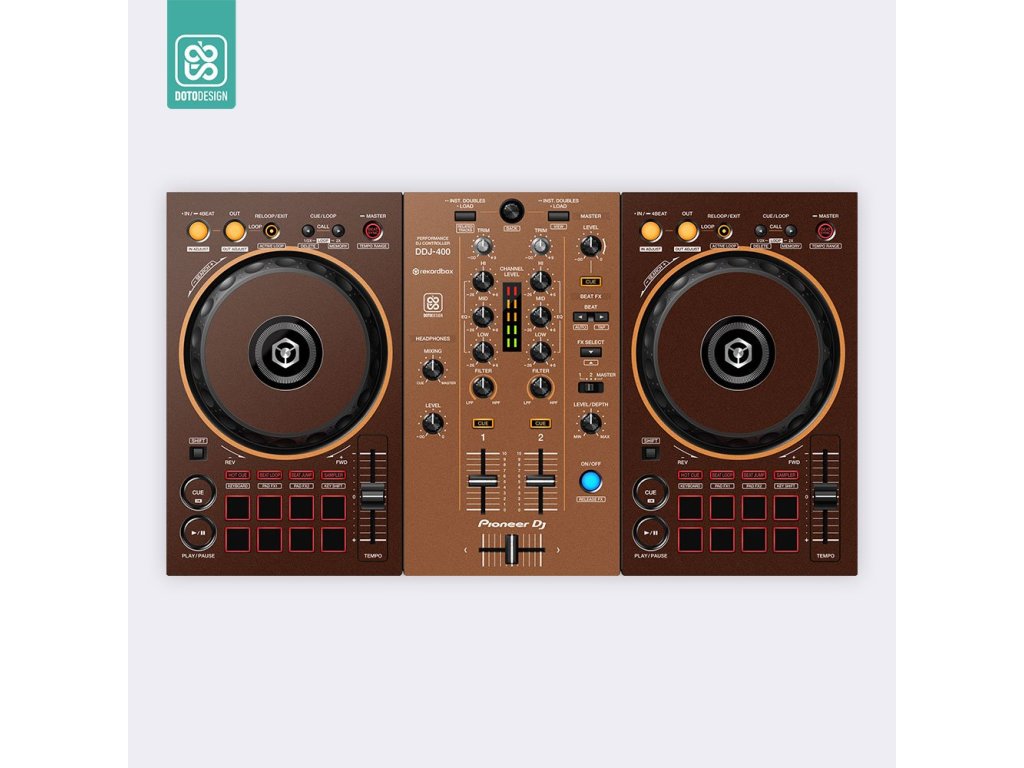 Naklejka na kontroler MIDI Pioneer DDJ-400 w wersji Mash-Up Espresso.