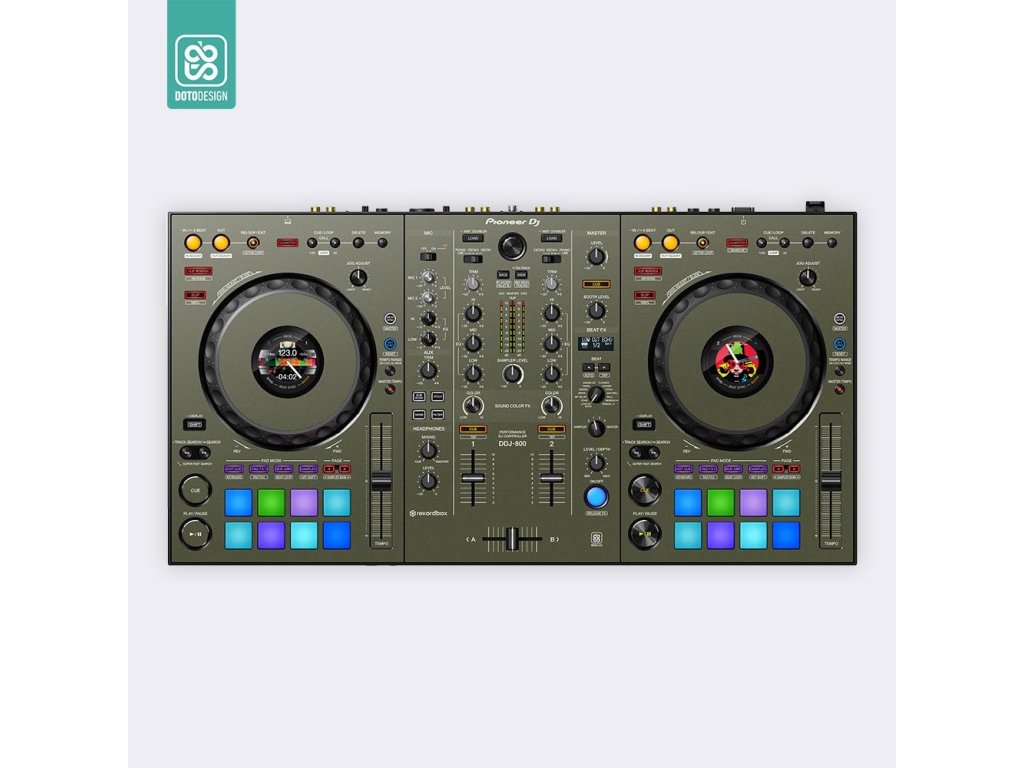 Naklejka na kontroler MIDI Pioneer DDJ-800 w wersji FULL COLORS, kolor army green (wojskowa zieleń).