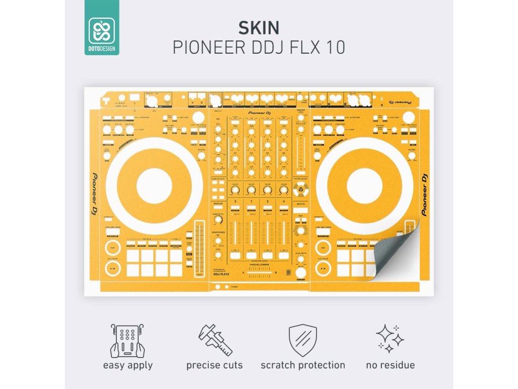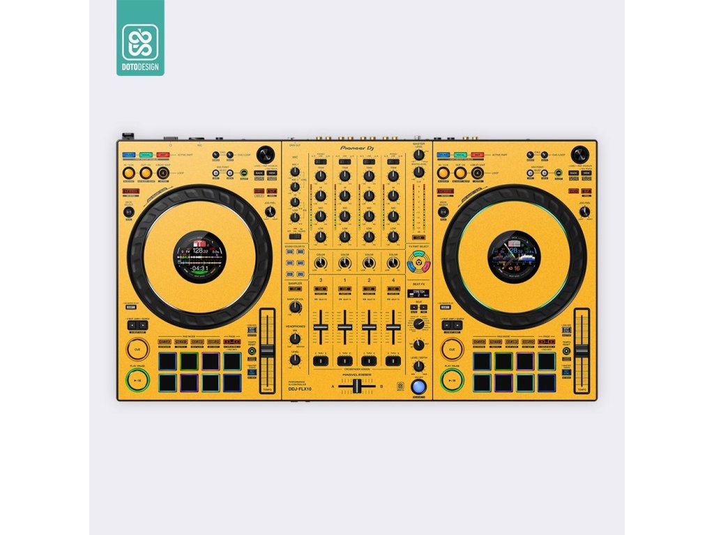 Naklejka na kontroler MIDI Pioneer DDJ-FLX10 w wersji FULL COLORS, kolor dark yellow (ciemnożółty).