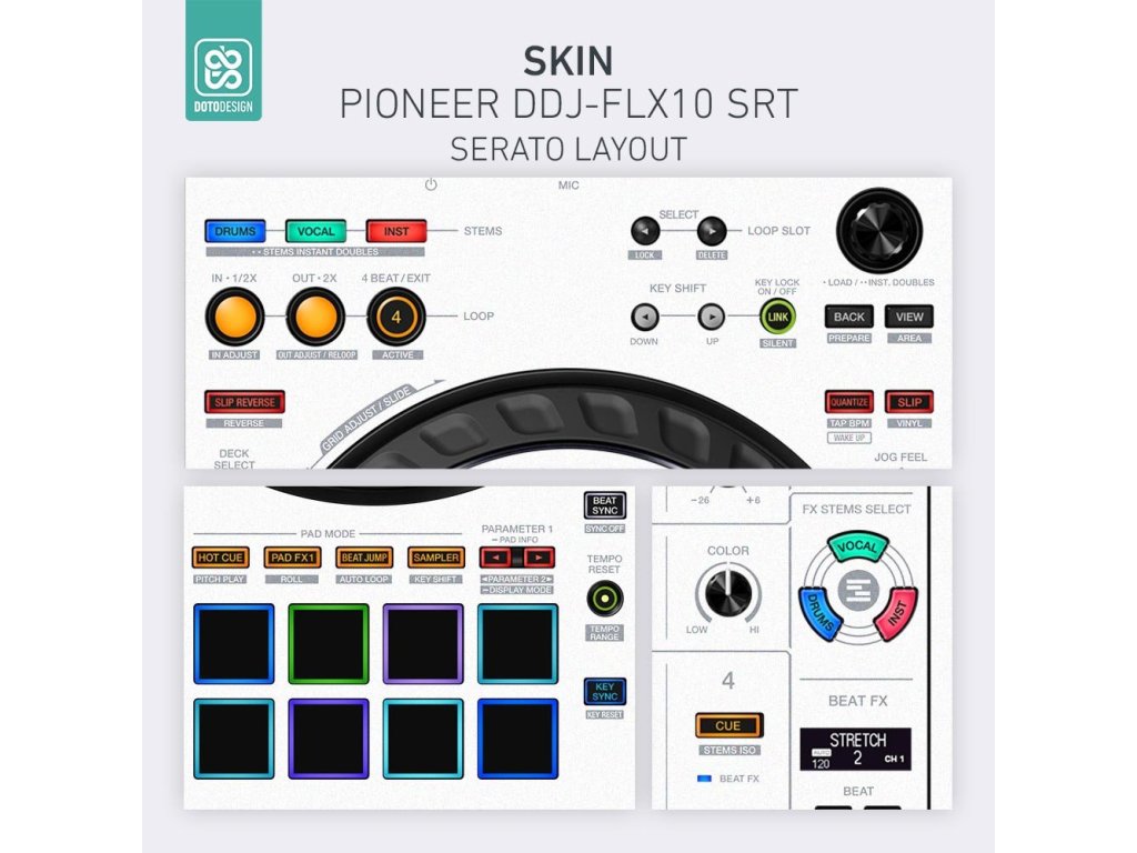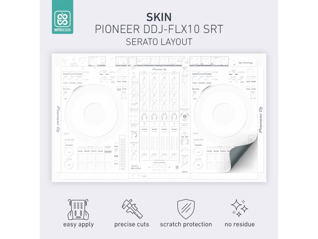 Naklejka na kontroler MIDI Pioneer DDJ-FLX10 (layout Serato DJ Pro) w wersji DAY & NIGHT, kolor biały.