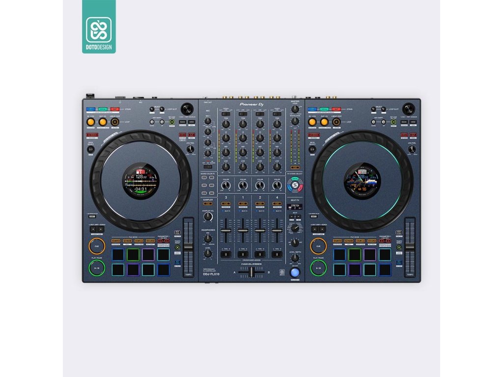 Naklejka na kontroler MIDI Pioneer DDJ-FLX10 (layout Serato DJ Pro) w wersji FULL COLORS, kolor midnight blue (północny błękit).