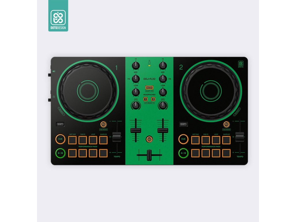 Naklejka na kontroler MIDI AlphaTheta DDJ-FLX2 w wersji COLORS DVS, kolor green (zielony).