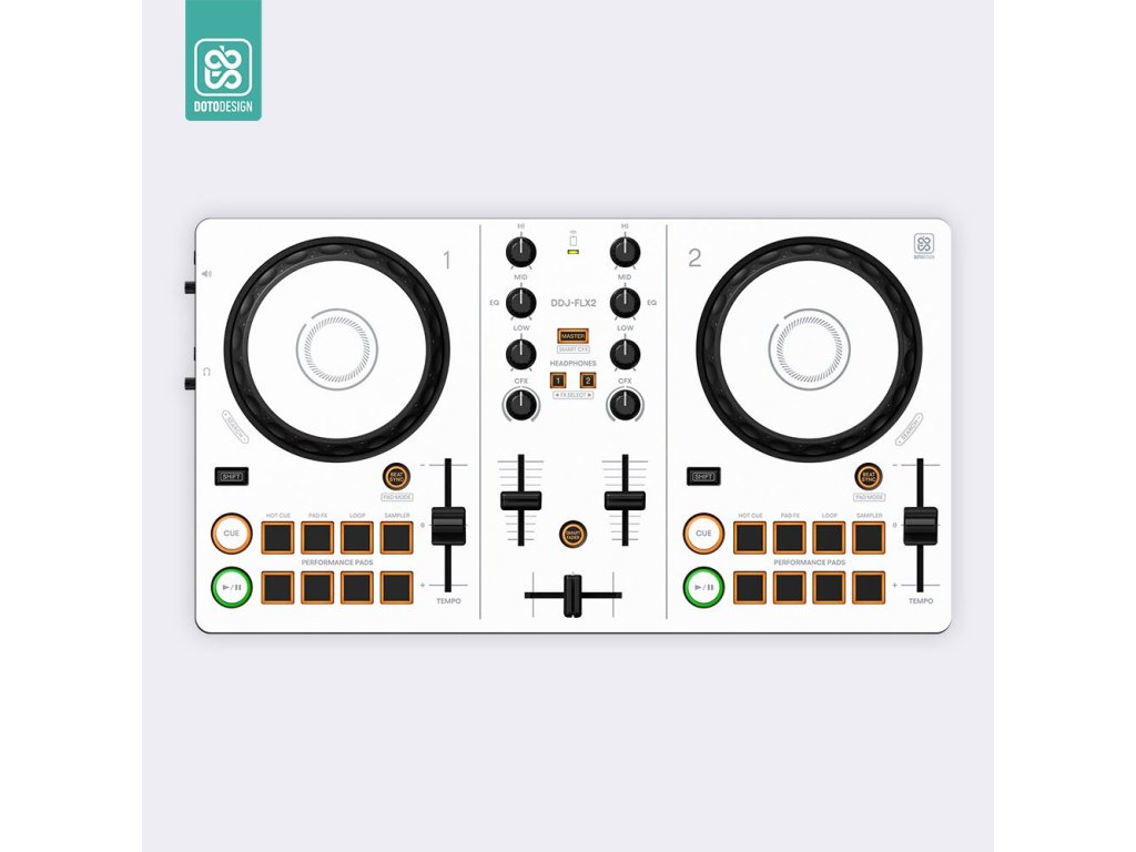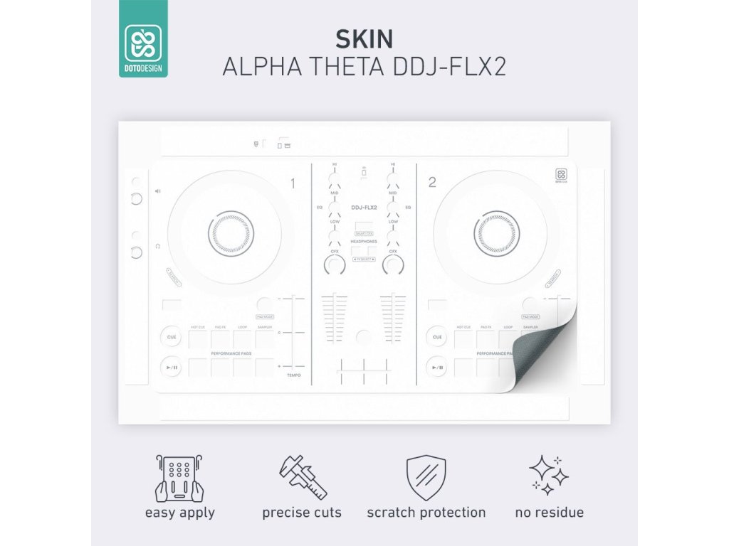 Naklejka na kontroler MIDI AlphaTheta DDJ-FLX2 w wersji DAY & NIGHT, kolor biały.