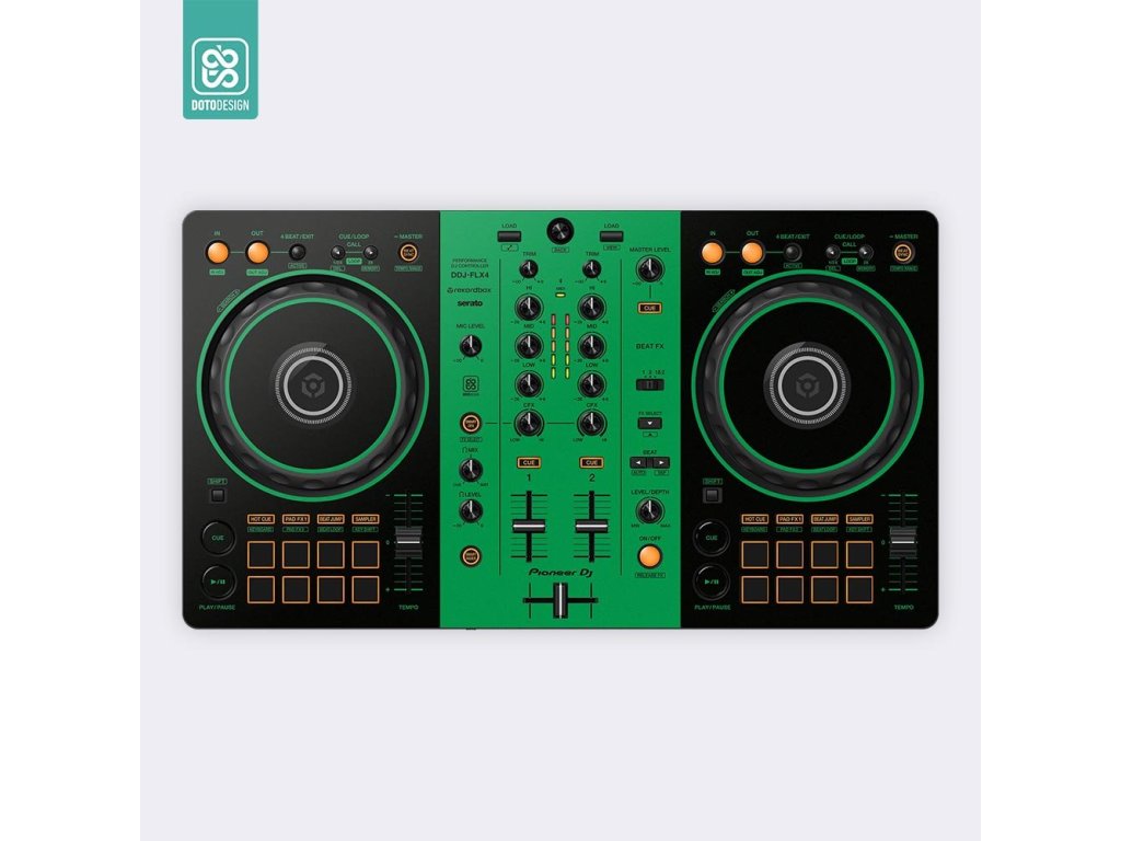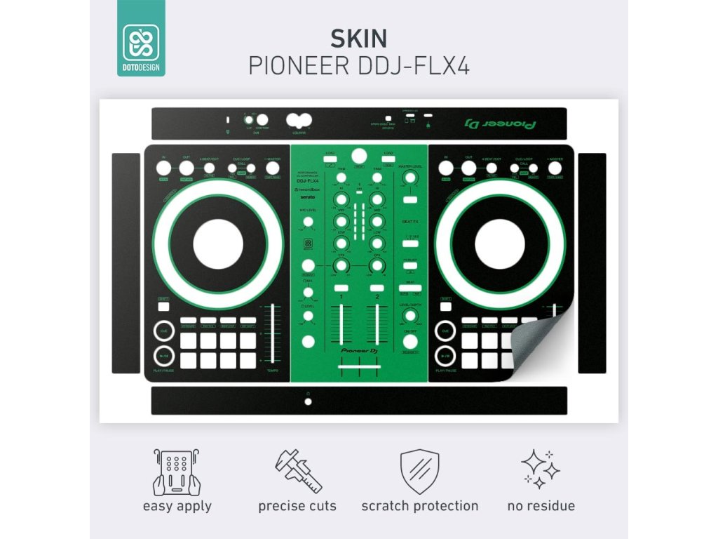Naklejka skin na kontroler MIDI Pioneer DDJ-FLX4 w wersji COLORS DVS, kolor green (zielony).