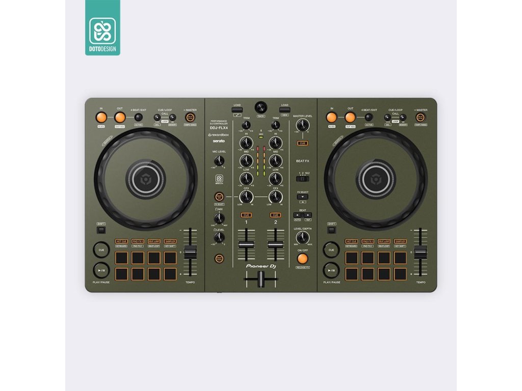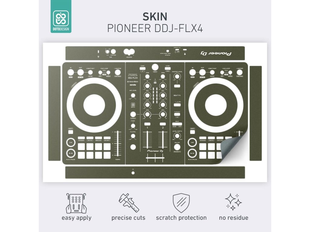 Naklejka na kontroler MIDI Pioneer DDJ-FLX4 w wersji FULL COLORS, kolor army green (wojskowa zieleń).