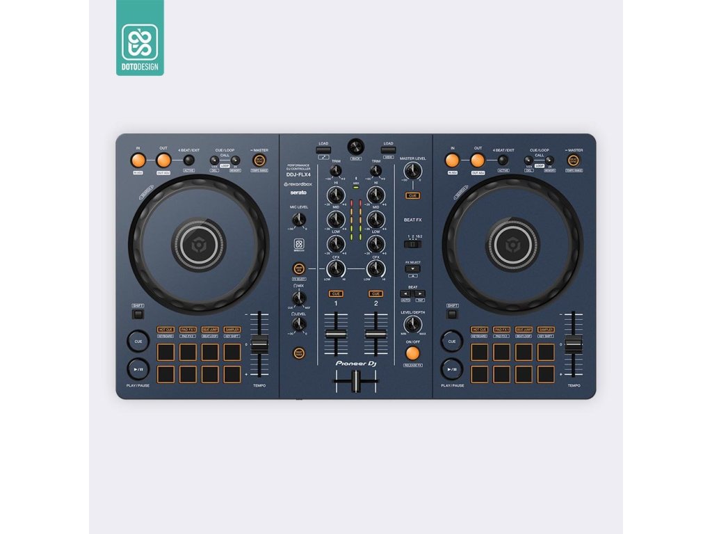 Naklejka na kontroler MIDI Pioneer DDJ-FLX4 w wersji FULL COLORS, kolor midnight blue (północny błękit).