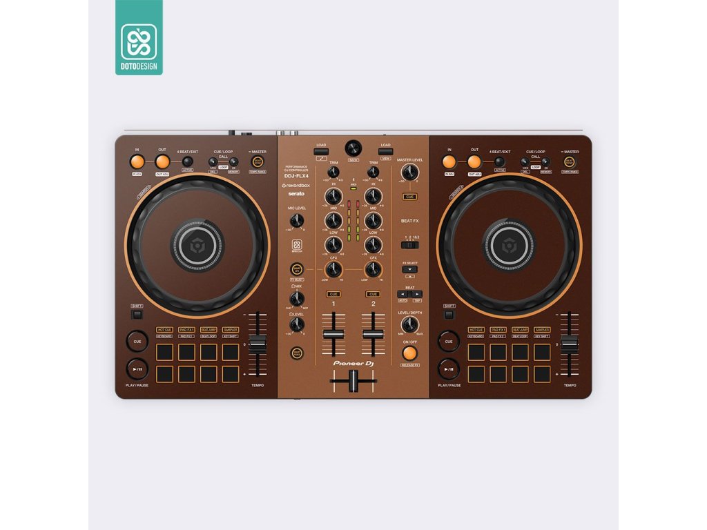 Naklejka na kontroler MIDI Pioneer DDJ-FLX4 w wersji Mash-Up Espresso.