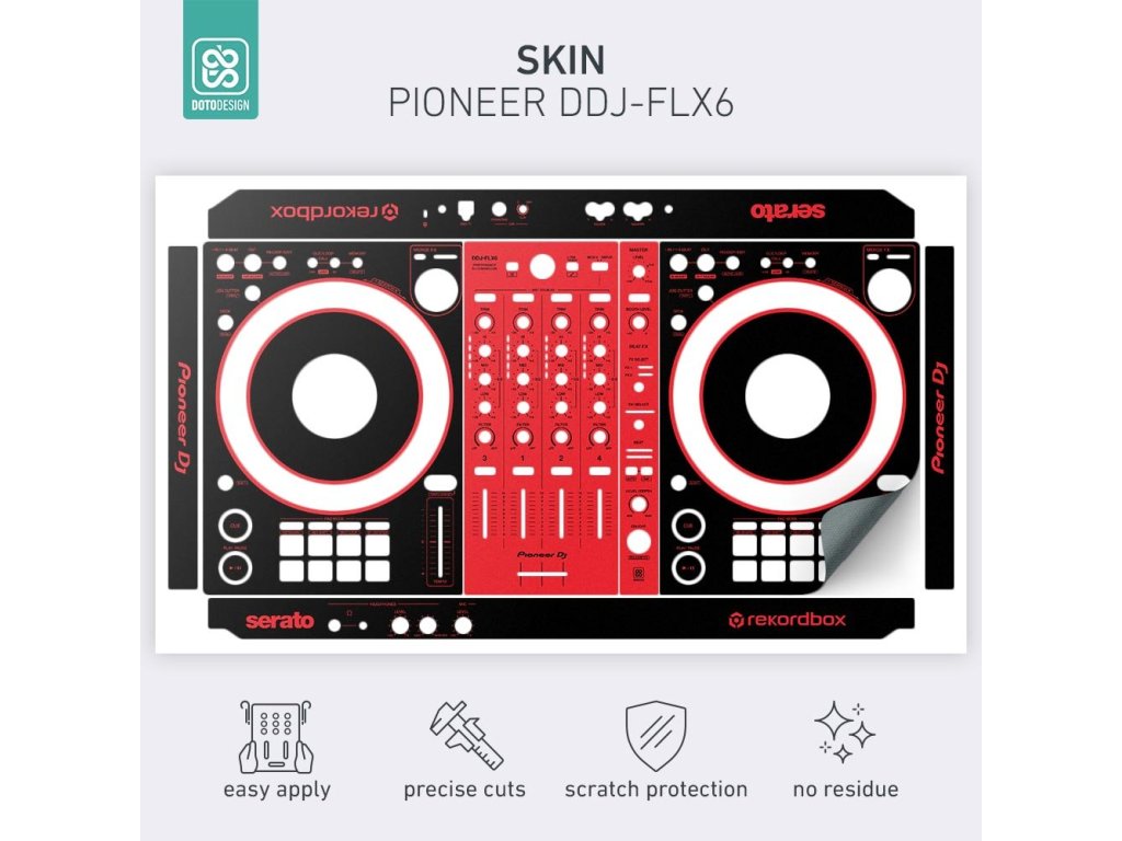 Naklejka na kontroler MIDI Pioneer DDJ-FLX6 w wersji COLORS DVS, kolor red (czerwony).