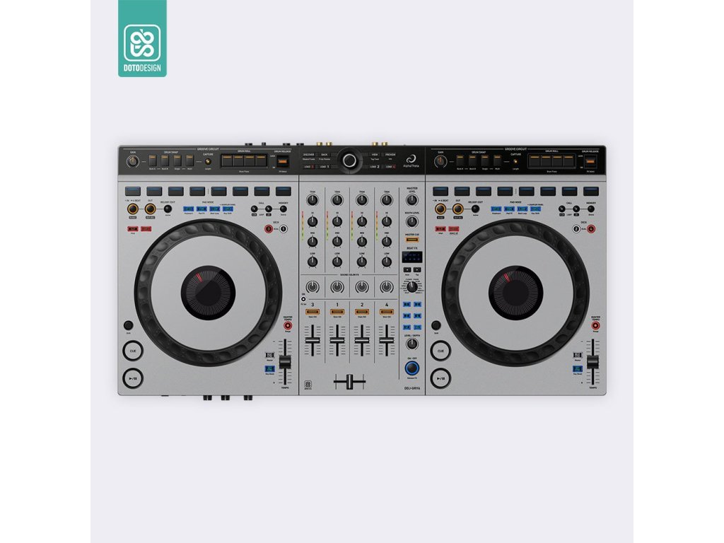 Naklejka na kontroler MIDI AlphaTheta DDJ-GRV6 w wersji FULL COLORS, kolor nardo grey (szary).