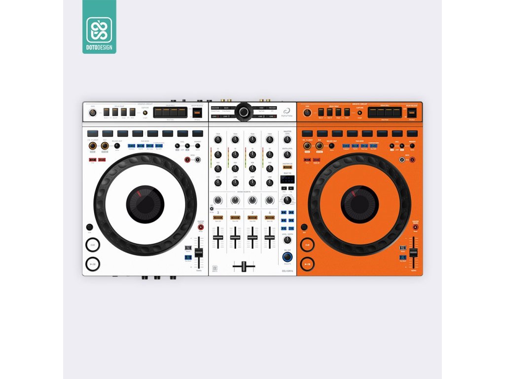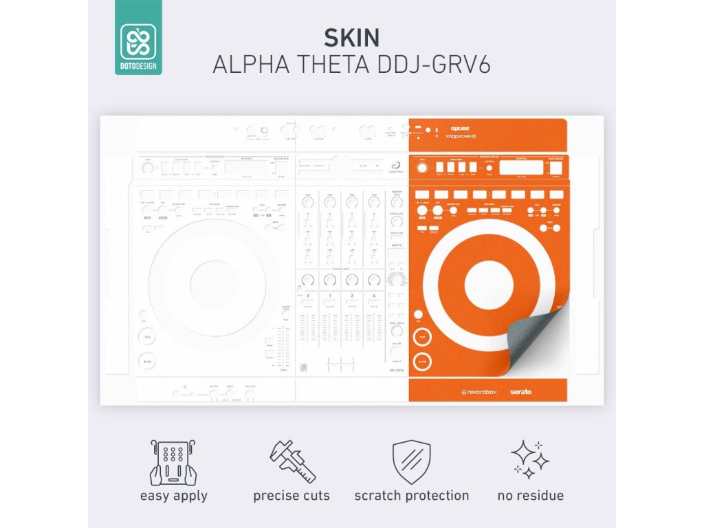 Naklejka na kontroler MIDI AlphaTheta DDJ-GRV6 w asymetrycznej wersji kolorystycznej orange-white (pomarańczowo-biała).