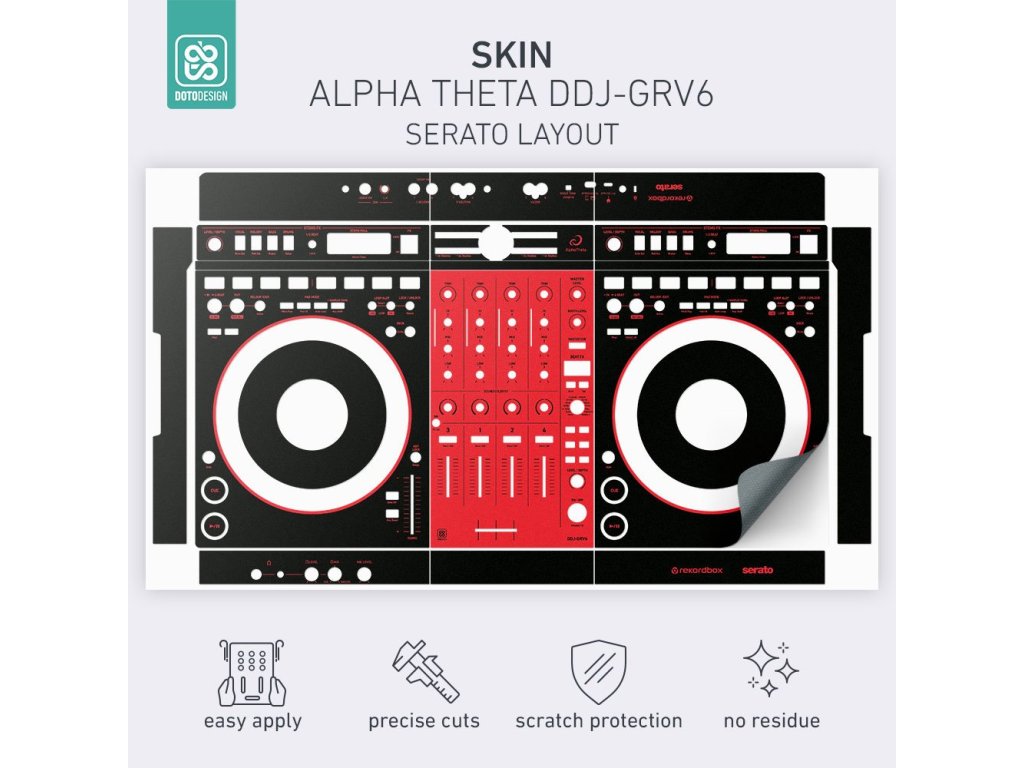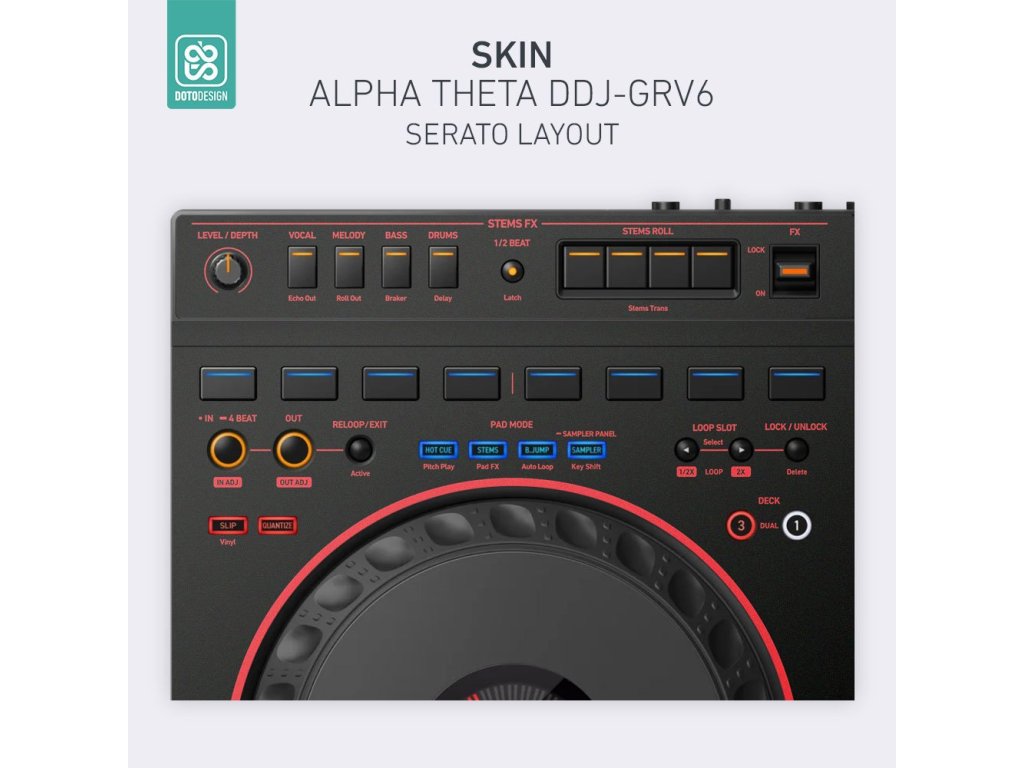 Naklejka na kontroler MIDI AlphaTheta DDJ-GRV6 (layout Serato DJ Pro) w wersji COLORS DVS, kolor czerwony.