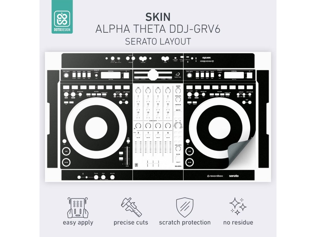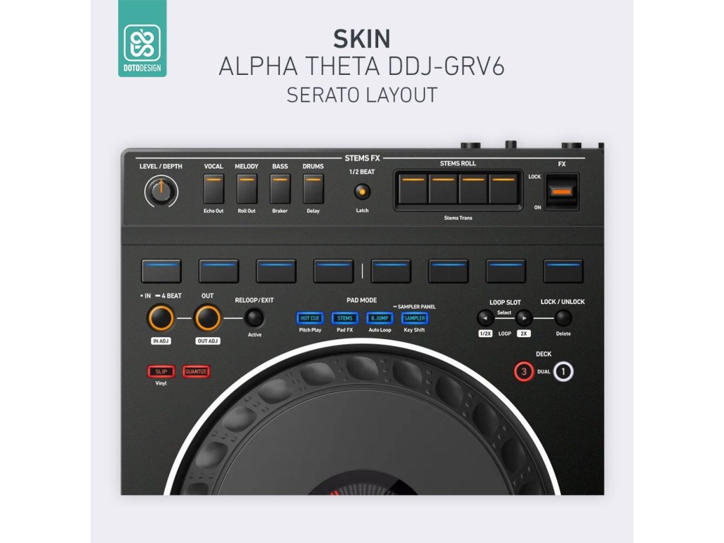 Naklejka na kontroler MIDI AlphaTheta DDJ-GRV6 (layout Serato DJ Pro) w wersji COLORS DVS, kolor biały.