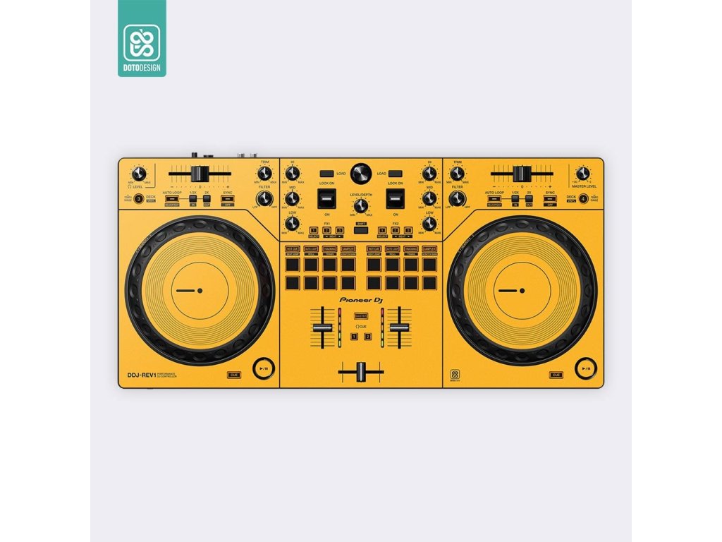 Naklejka na kontroler MIDI Pioneer DDJ-REV1 w wersji FULL COLORS, kolor dark yellow (ciemnożółty).