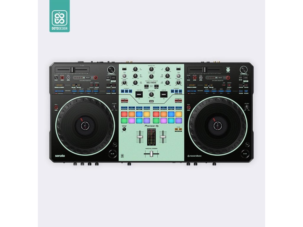 Naklejka na kontroler MIDI Pioneer DDJ-REV5 w wersji COLORS, kolor aquamarine (akwamarynowy).