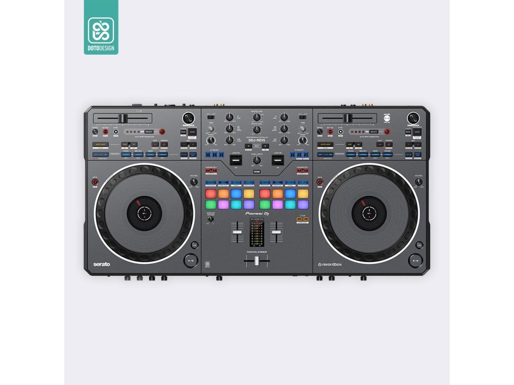 Naklejka na kontroler MIDI Pioneer DDJ-REV5 w wersji FULL COLORS, kolor graphite grey (grafitowy szary).