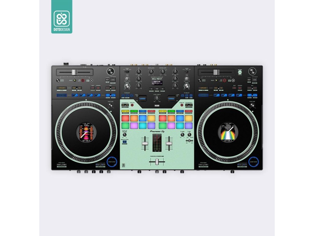 Naklejka na kontroler MIDI Pioneer DDJ-REV7 w wersji COLORS DVS, kolor aquamarine (akwamarynowy).
