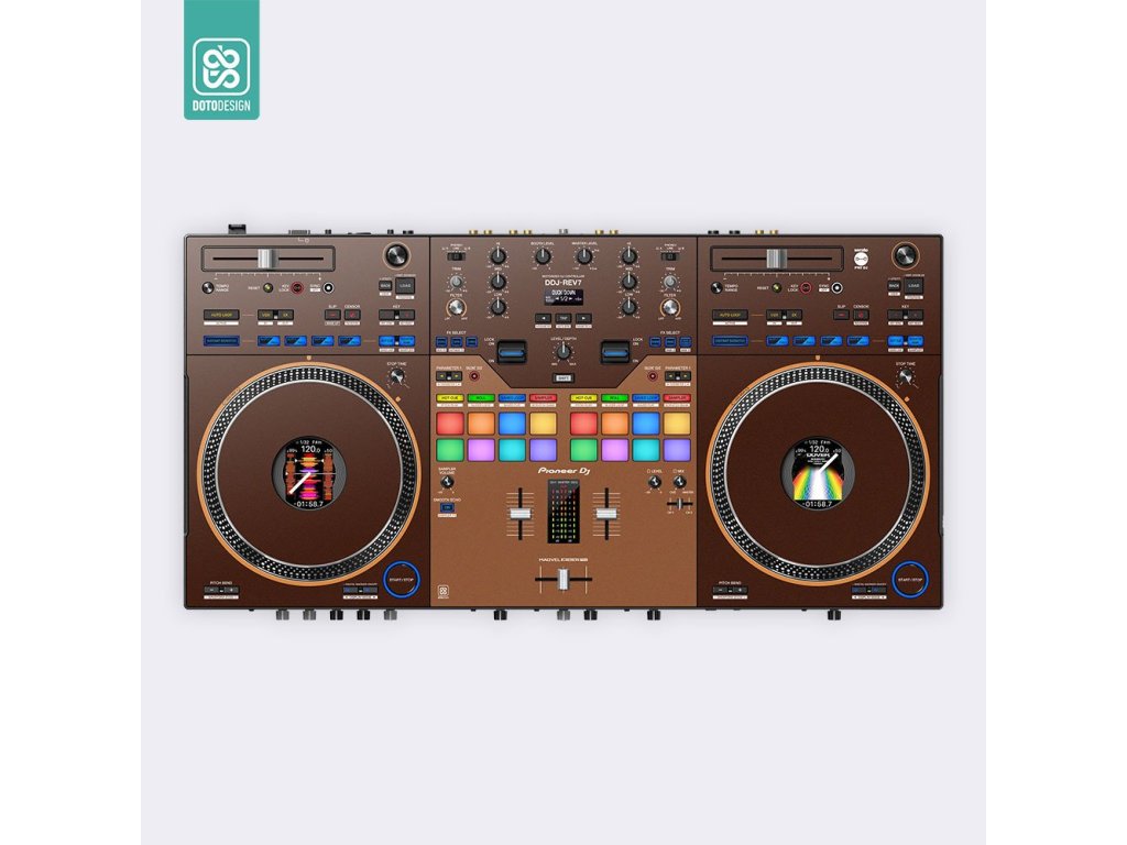 Naklejka na kontroler MIDI Pioneer DDJ-REV7 w wersji Mash-Up Espresso.