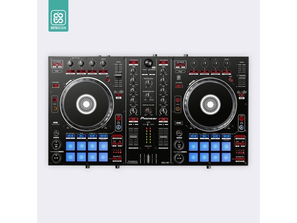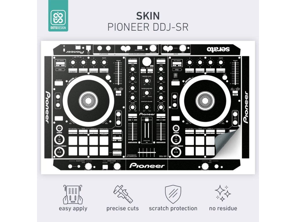 Naklejka na kontroler MIDI Pioneer DDJ-SR w wersji FULL COLORS, kolor black (czarny).