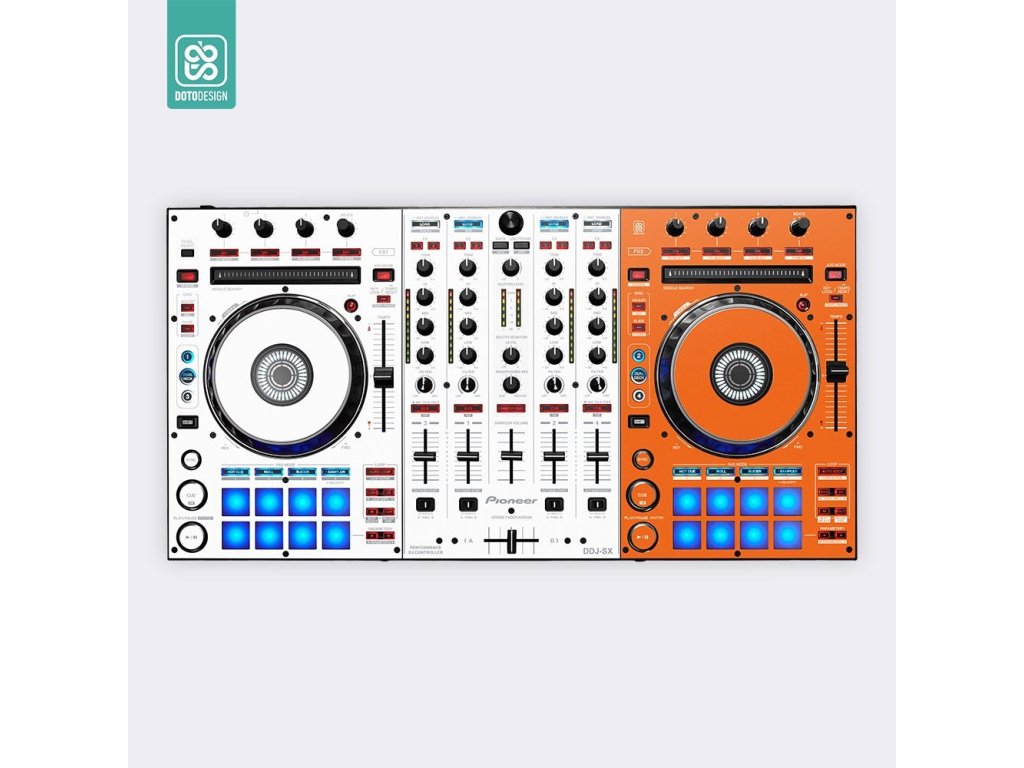 Naklejka na kontroler MIDI Pioneer DDJ-SX z asymetrycznym wzorem, kolor pomarańczowo-biały.